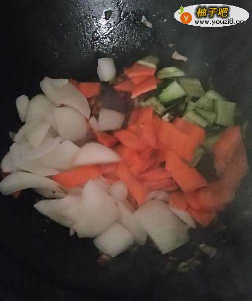 胡萝卜黄瓜切片,洋葱切块,葱姜切沫备用。