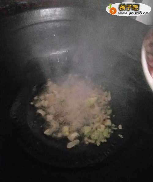 4盛出鸡蛋后,将锅中倒入适量的油,放入大料,油温升至七八成热,放入葱姜炒香后放入肉片,炒至变色后,加入适量的盐和酱油。