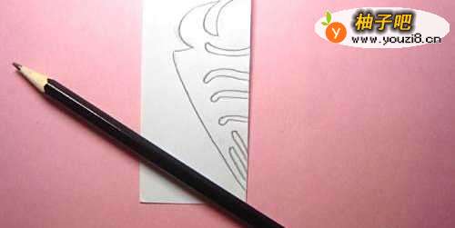 2接着,把正方形卡纸对折一半,并用铅笔在白纸上,画出好吃的冰淇淋的图形,根据对称图形,这里画出半个图形,如下图所示。