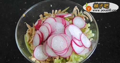 7加入樱桃萝卜片,放入橄榄油和酱油拌匀即可