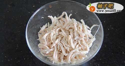 2煮熟后放入冰水里再捞出,这样做的鸡丝非常爽口
