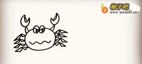 螃蟹(pángxiè):动物界,节肢动物门,甲壳动物亚门,软甲纲,真软甲亚纲,十足目,腹胚亚目,短尾下目。是甲壳类动物(crustacean),身体被硬壳保护着,靠鳃呼吸。今天我们来画一只螃蟹简笔画