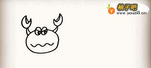 首先画螃蟹的眼睛.两只眼睛是p排在一起的。