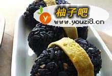 4粳米中加入糯米200克淘洗干净,晾干,磨成细粉,过筛后,加入适量开水拌匀,晾凉,揉成面团。另将剩余的糯米淘洗干净,倒入冷水浸泡10分钟左右,捞起沥干,用石臼捣成米粉,掺入面团中,拌匀揉透搓成条,摘成每个重35克的面剂100个,按成面皮,包入馅料,做成圆形生坯。将生坯蘸水,放入乌米中滚粘上乌米,上笼蒸熟取出即成。