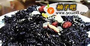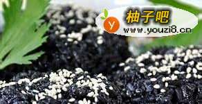 将乌饭树叶在石臼中捣碎,放入缸内,加冷水2500克,浸泡24小时,见水质呈深黄色时,用纱布过滤成乌叶水。取糯米600克放入乌叶水中,浸泡12小时,待米粒呈淡乌色时捞出,沥干水分。