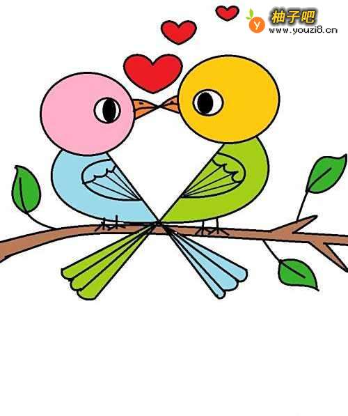8最后涂上颜色,这样恋爱中的小鸟就画好了。