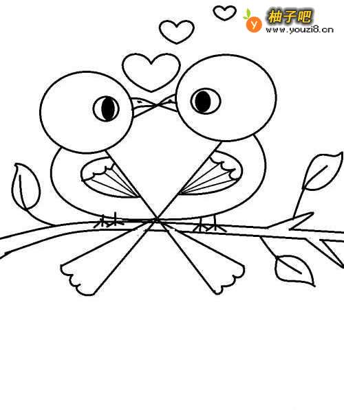 两只小鸟相亲相爱,特别幸福,那怎样画恋爱中的小鸟?下面我们和小伙伴们一起来学习画一画吧。