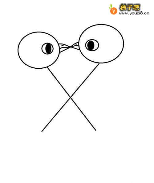 3在圆形里画好眼睛,把嘴巴画出来,如图所示。