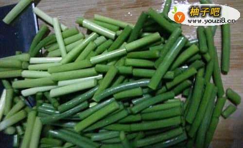 蒜薹去掉叶子,洗净,太长的可以切断洗,洗干净后切成段