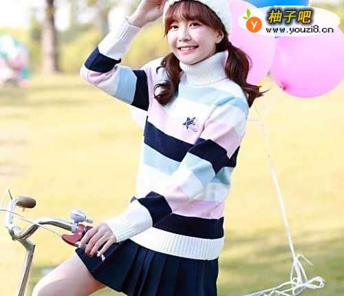 4针织帽子+高领毛衣+短裙。针织的帽子和毛衣都能很好的衬托出双马尾的可爱,而且这样穿帽子可以分散人们的注意力,双马尾不会太显眼。这样人们就会觉得你的可爱不只是靠双马尾来的,还有自身气质的原因在内。