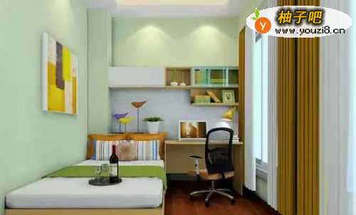 2这种装修有一种森系的感觉,夏天会给人清凉的感觉。这种装修以淡绿色为主,床应选择原木色。墙上可以适当挂一些艺术画来装饰。