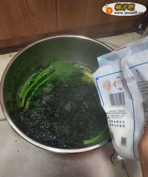 3水开之后倒入适量盐、肉味王搅拌均匀。