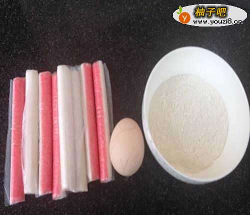 准备所需食材:超市买来的蟹棒、鸡蛋、面粉。