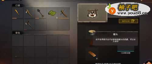 6然后利用烧烤架将罐头制造成狗粮,注意狗粮上的字。