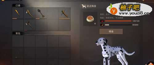 7将狗粮拖至图中位置,点击喂养就可以了。其它的也可以。