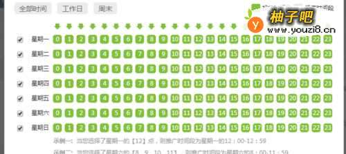 7第七步:在进行“修改投放时段“操作后,就会跳转到投放时段的选择界面。根据自己的需求选择需要投放的时段,选择完后点击“确定“,所有操作就完成了。如下图所示: