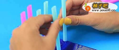 5然后将长短不一的塑料管粘在瓦楞塑料上