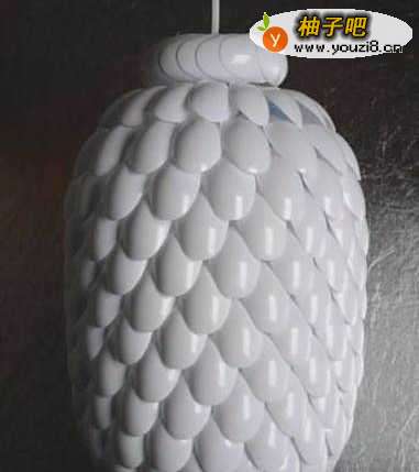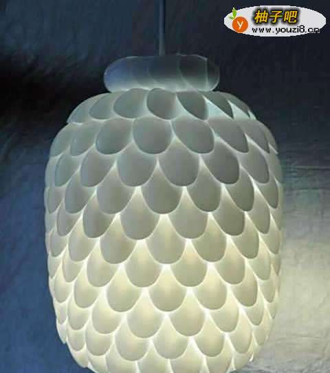 我们生活中经常看到一次性勺子的踪影,用过就随手扔掉了。其实,一次性勺子也是有它的价值的。只要我们动一动双手就可以让它们成为一件完美的工艺品。利用简单的勺子和大矿泉水瓶,DIY出来的创意唯美吊灯效果,不得不赞叹其完美,一个简单的DIY,一个精妙的创意,巧手催生了旧物利用,变废为宝的妙思。这样的作品,摆放在家里,品味绝对UP。今天,我与大家分享这款用一次性勺子制作漂亮的莲花灯罩。大家也跟着动手做做吧!