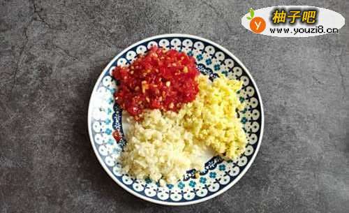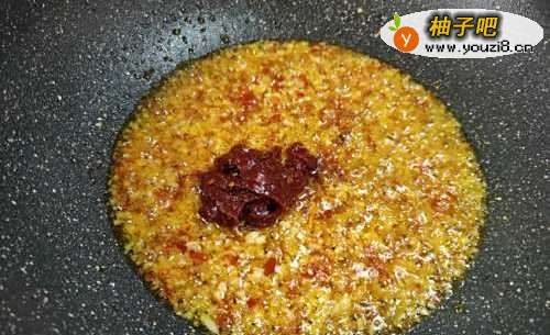2起油锅,倒入适量菜籽油烧熟,放入姜蒜末,泡椒末炒香