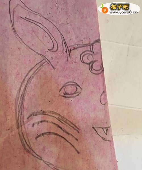 2第二步 拿起绘图铅笔 靠双边的地方 画上兔子的耳朵 和它的头部轮廓
