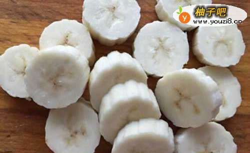 4第四步,把香蕉切成厚一点互随悦儿的片备用。