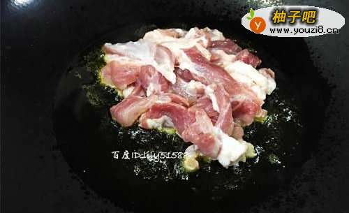 3热锅凉油,把瘦肉放进锅里用大火翻炒两分钟。