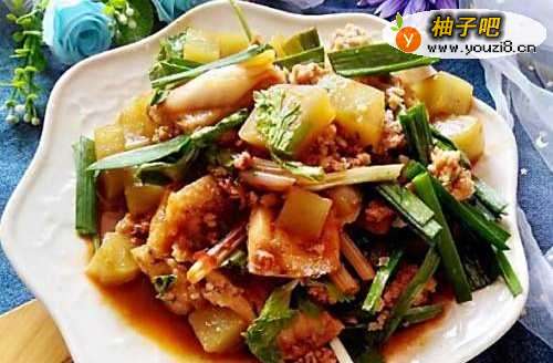 13关火放入蒜苗以及芹菜。关火,盖上锅盖焖十分钟左右,美食完成