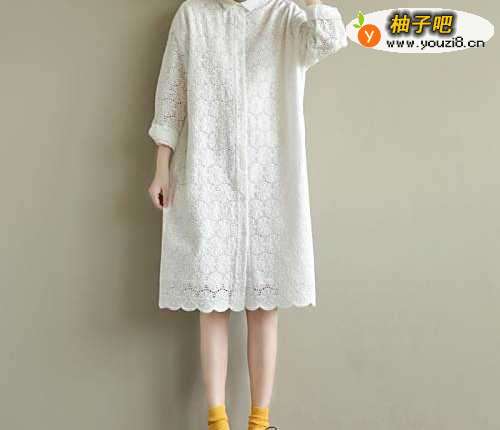 3白色宽松蕾丝连衣裙搭配黑色小皮鞋,黄色袜子,非常吸睛的搭配,同时有很强的文艺风,很适合森林系的女性朋友。
