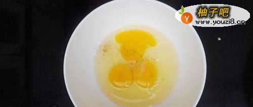 4用筷子把鸡蛋搅匀,然后加半勺盐和少量的调味品,再次搅匀。