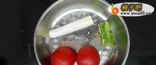 准备好食材,两个西红柿、两个鸡蛋、半根辣椒、半根葱