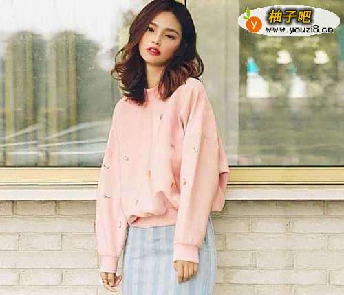 由于卫衣材质和款式的限制,使得穿者会看上去很胖。为了减弱这种臃肿感,可以在卫衣里面搭配一件衬衫,无论是领子露出来还是衬衫的下摆露出来都可以,从而显现出身材的娇小。