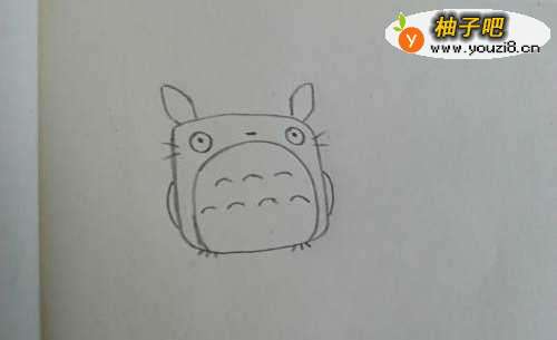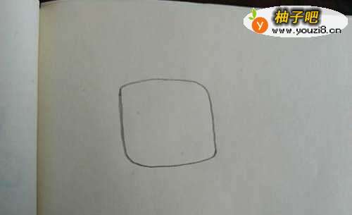 2先在纸上画上一个方块,在方块的上方两侧画上两只耳朵,如图。