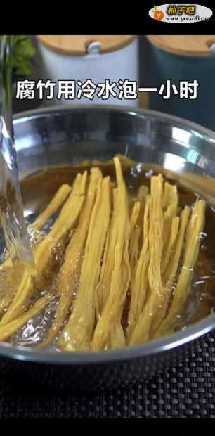 2腐竹一把,用冷水泡一个小时,不要泡得太软,切成段