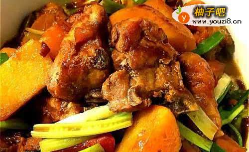 3放入红萝卜、马铃薯一起烧到汤汁剩一半。