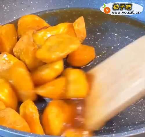 5倒入地瓜翻炒,将糖水包裹均匀,拉丝就可出锅