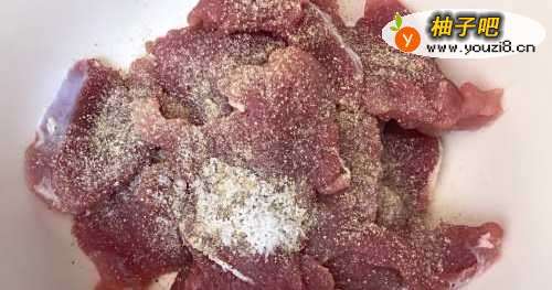 把里脊肉片成薄片加入少许的盐及白胡椒粉腌制十五分钟