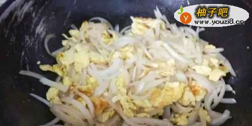2锅内烧油,放入打散的鸡蛋。翻炒一下。见下图