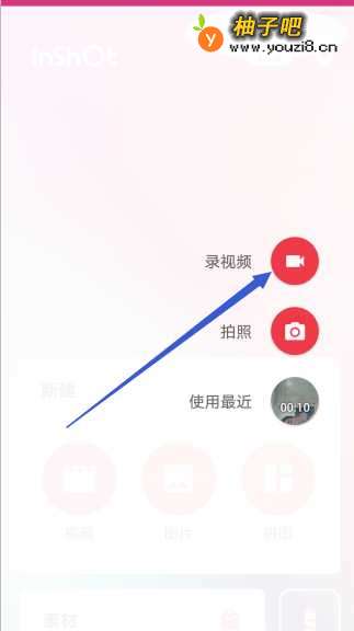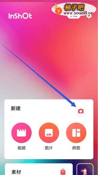 接下来,打开手机中已经安装好的Inshot应用,进入到首页后,选择点击其中的拍摄按钮图标,就是相机一样的图标,如下图所示。