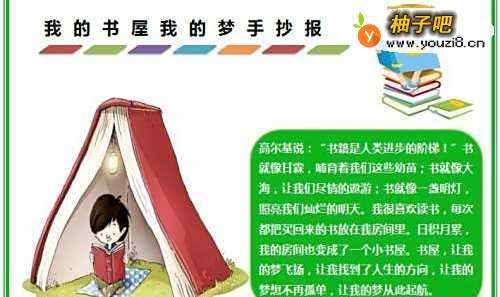 2在【我的书屋我的梦手抄报】标题的右侧处,画出画面丰富内容,如下图所示。