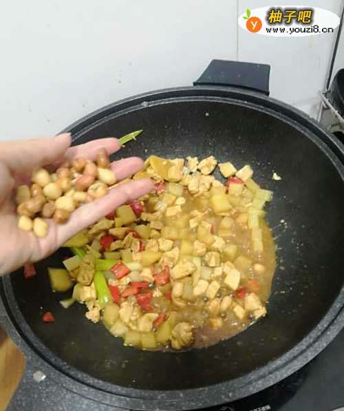 8最后关火放入熟花生翻炒均匀。