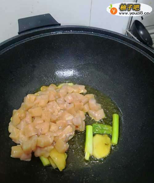 3倒入鸡胸肉翻炒均匀。
