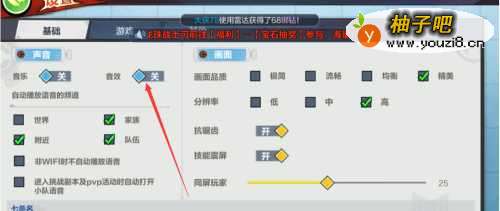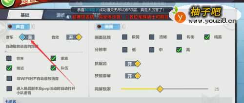 6如果想要关闭游戏的音效,把“音效”后面的按钮关闭就可以了,如图所示。