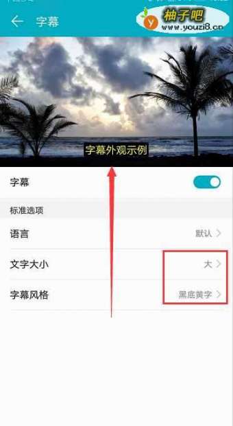 5开启之后,在下方还有个 文字大小与字幕风格,打开调整自己喜欢的风格与大小就可以啦,如下图