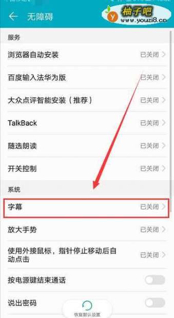 3打开无障碍页面,在页面中间有个 字幕,如下图