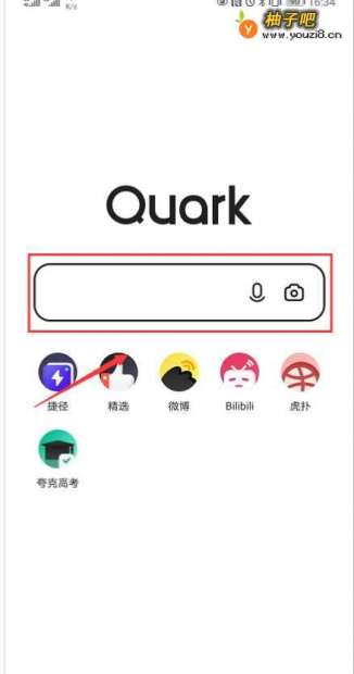 2进入到主页面,在搜索获夏框中搜索【夸克高考】关键字