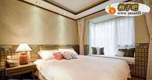 5窗帘和四件套是私人订制的吗?看起来非常的搭配,小小的飘窗空间可以在这里尽情的享受阳光和微风,实木的软床营造更多的舒适生活,背景墙采用了艺术装饰代替了婚纱照片,看起来十分的高大上。