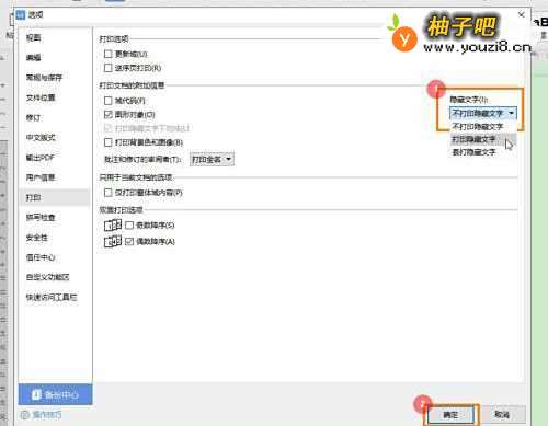 3在打印页面的隐藏文字选项,选择【打印隐藏文字】,点击【确定】即可。