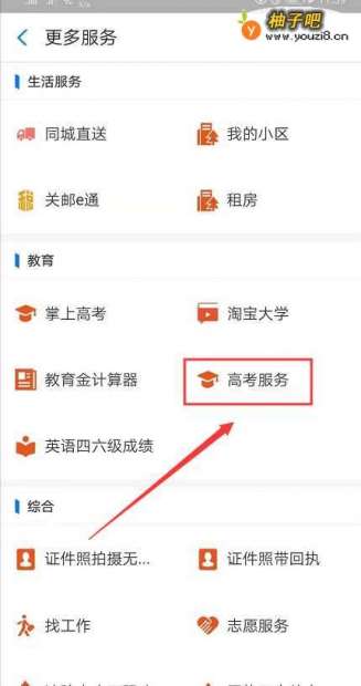 1、打开手机,进入【支付宝】2、点击【更多】--【城市服务】3、进入【更多服务】的详细页面4、进入到更多服务页面,点击【高考服务】页面即可