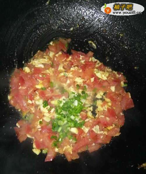 5加入少量的水,煮一下,让西红柿的酸酸甜甜的汁液更渗透出来;