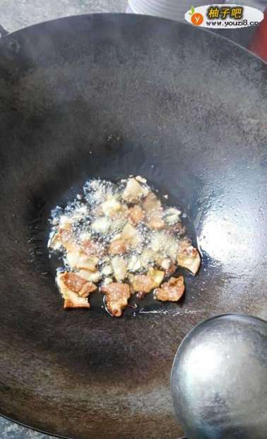 3将腊肉切成比较薄的片儿,放在碗中待用。做好以上的准备后,四季豆的水应该差不多沥干了。然后,我们可以上锅烧油。静待片刻后,先放入腊肉片,并把火关小,在热油中煎一会儿,直到腊肉上的油烧出一半。(注意哦:最好不要把腊肉片烧的很干,因为这样的话,等会儿吃的时候可能会感到很干。)